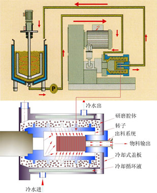 研磨能量集中,所有物料都是在研磨區(qū)內(nèi)進行研磨,所得物料粒徑分布窄;攪拌桶和分散機內(nèi)漿料大流量循環(huán),所以漿料能在短時間能循環(huán)數(shù)十遍,大批量處理物料。